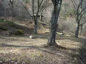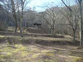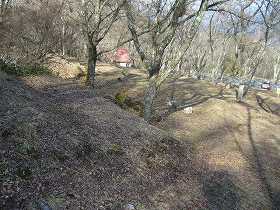 | 出城のような位置にある香花社。 | 香花社の南側の腰曲輪。 |