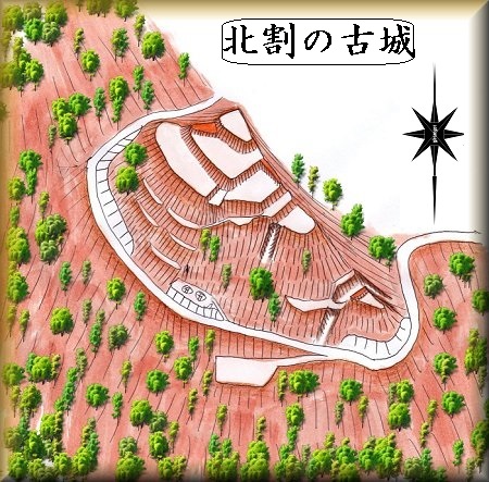 駒ケ根ICの西側の高い山稜に置かれている古城公園が北割の古城の跡である。笙の笛山の中腹にある山稜で、平野部からの比高は300m近くある。また、この少し東側に降ったところには荒城があり、こちらはgooglemapにも掲載されている。