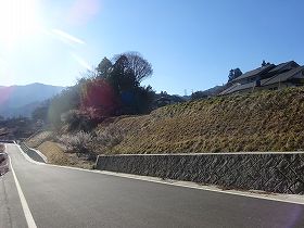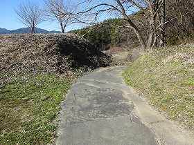 | 曽倉城のある民家への入口。 | 1郭手前にある土塁。 |