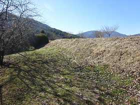 | 1郭東側の城塁。 | 1郭内部。南東部分が一段低くなっている。 |