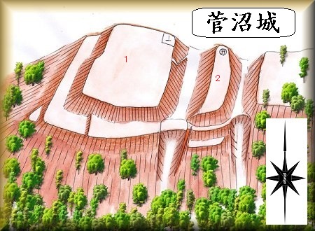 菅沼城は基本的には単郭構造と言ってもよい城郭ではあるが、急峻な台地縁部に位置し、台地続きの側には二重堀を形成するなど、なかなか防御性の高い城郭であると言っていい。