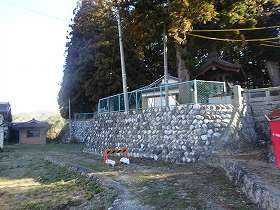 中村城は、中曽倉神社の北東200mほどの所に築かれていた。かなりの山奥に位置している。