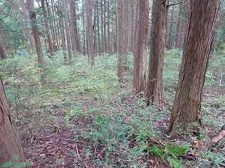 ということで、上の道に車を置いて、下の方に向かって進んで行ったのだが・・・・けっこうヤブがひどいうえになかなか遺構が見えてこない。といったことで、途中であきらめて引き返してしまった。