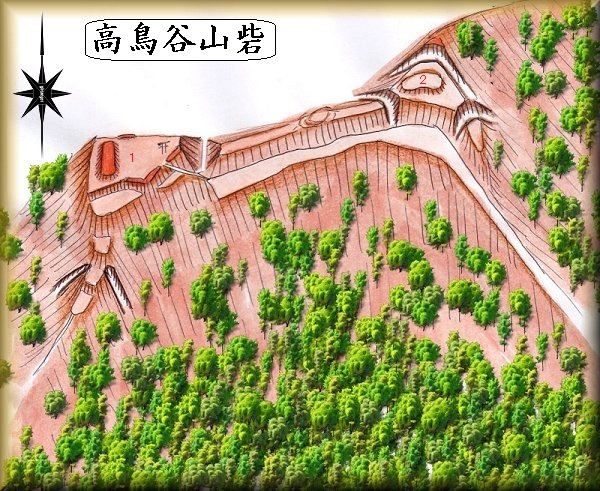 今回、日程の関係で、山上まで登ることはできなかった。参考までに、『信濃の山城と館』の図に基づいた鳥瞰図を掲示しておく。