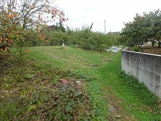 | 城山城の東側の堀跡。城塁はだいぶ削られ、堀は浅くなっているようだ。 | 南側の堀跡。 |