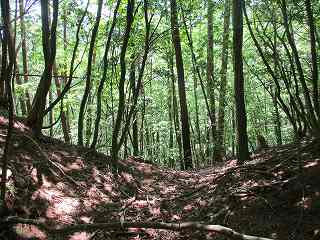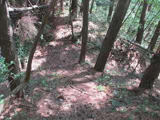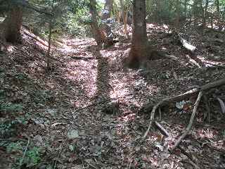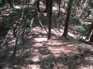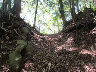 結局、そのまま直登していったら、1郭北側の堀切のところまで直登する羽目になってしまった。直登は効率よく登れるのだが、斜面が急なので、けっこう疲れてしまう。