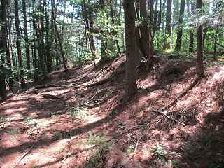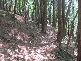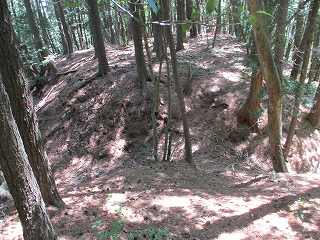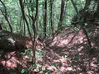 | 5郭との間の堀切。 | 5郭東側の帯曲輪と5郭城塁。 |
