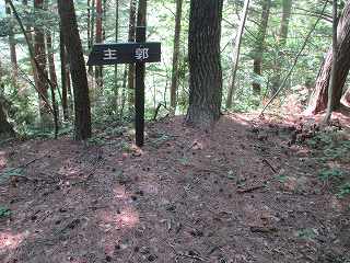 再び1郭北側の大堀切まで戻り、主城域に入って行く。1郭には「主郭」と書かれた案内が立てられていた。1郭は南北に長く、その先に切岸があり、2郭に接続する。また、側面部には帯曲輪が数段造成されている。これらの帯曲輪も切岸造成を行った際に生じたものであり、居住性のあるものではない。