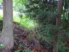 | 北側の墓地の間の堀切状部分。 | 中屋敷北側の堀の、北端部分。 |