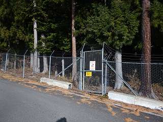 車を降りて山の方を見ると、山の周囲には鉄柵が張り巡らされているのだが、ゲートも見えている。このゲートを開けて中に入って行けばよいのである。