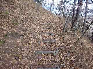 これを登って行く途中で本当に息が上がってしまい、休み休み登って行くことになった。谷戸部から見上げる山頂部は「ここまで来れるか」と挑発するように威圧的に見えていて精神的にも疲れてしまうのであった。「今日はこの城でおしまいにしようかなあ」などと思いながら登って行く。