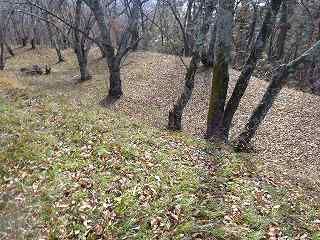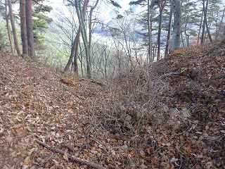 | 3郭から西側にかけて何段もの段郭が造成されている。 | 3郭の先の堀切。 |