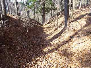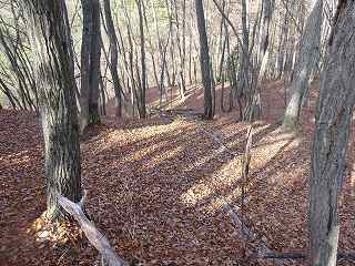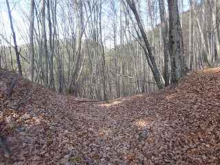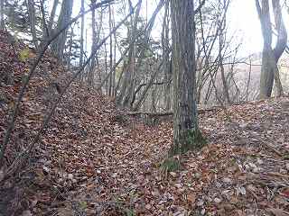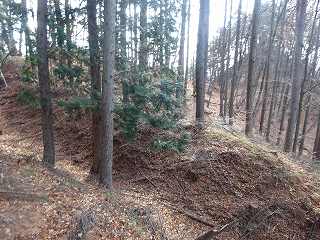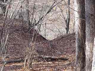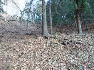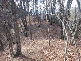 | さらにその先の堀切2本目。 | 尾根鞍部に掘られた城域の北端を示す堀切。 |