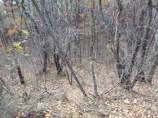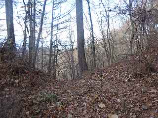 | 再び1本目の堀切。 | 西側尾根の二重堀切方向を見下ろしたところ。 |