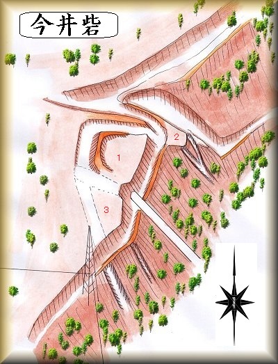 今井砦は、このような構造の城郭であり、規模は大きくないながら、それなりによく造成された構造物であったようである。