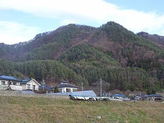 | 稲倉館方向から遠望する三才山。比高300m近くある。 | |