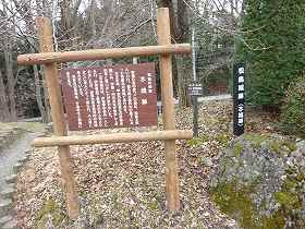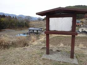 | 途中にある案内板。城址を示す矢印が左右両方に向けられているが、正解は右方向である。 | 県指定史跡となっているだけあって、案内板が充実している。 |