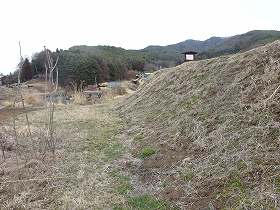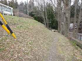 | 日輪寺の側から見た東側の城塁。 | 東側の道路沿いに見た城塁。 |