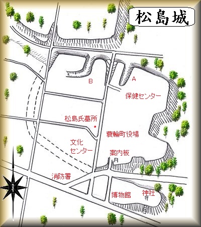 | 城内にある松島家墓所の案内板。 | Aの部分の堀跡。 |