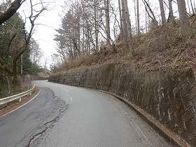 | その北側は知久沢川に臨む断崖となっている。落ちたらただではすまない。 | 道路脇から見た1の堀。 |