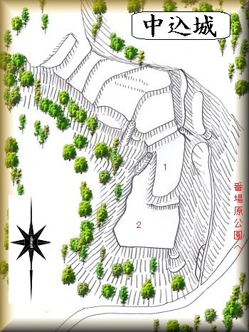 番場原公園に北側から向かう途中の道の東側の山稜が、中込城の跡である。