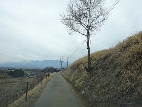 | 番場原公園への道。この右側が城址かと思って登ったのだが、実際には左側だったらしい。 | |
