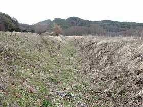 | 2郭に立てられている案内板。 | 2の堀の北端に残る残存部分。 |