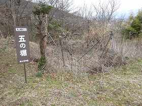 四の堀もほとんど埋められてしまっているのだが、若干4郭側の方が土手になっている部分が堀の跡であったと推測することができる。ところで、この城址には「一の堀」から「五の堀」まで、堀跡に目立つ看板が建てられているのだが、「四の堀」の看板だけがなかった。壊れて捨てられてしまったのであろうか。