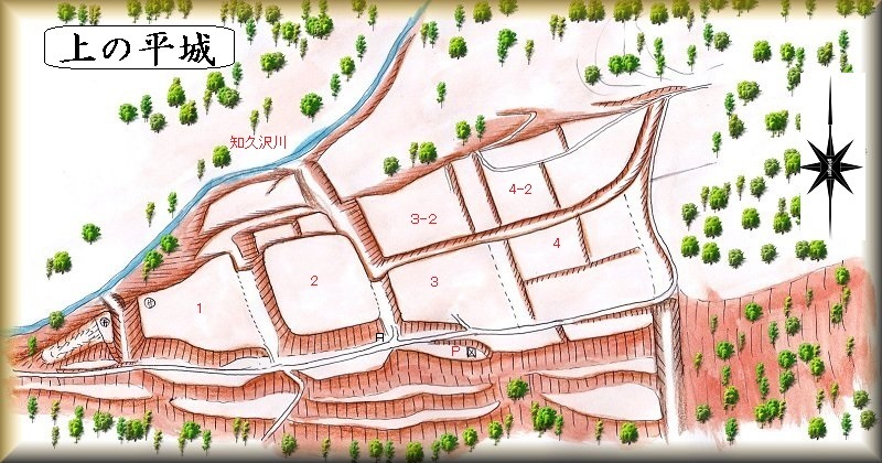 上の平城はこれだけの大規模な拠点的城郭であるのに、その歴史はよく分からない。いろいろと想像を巡らせてしまいたくなる城郭である。これだけの規模であるというのに伝承がないことからすると、豪族の居城などではなく、純粋に軍事的拠点として一時的に取り立てられた城郭であったことは間違いないと思われる。
