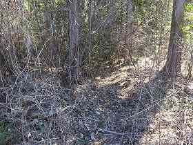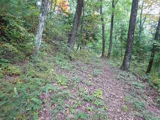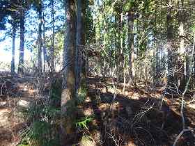 | その先の尾根から三重堀切方向を見たところ。 | その先の尾根は傾斜地形となっている。 |