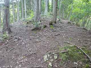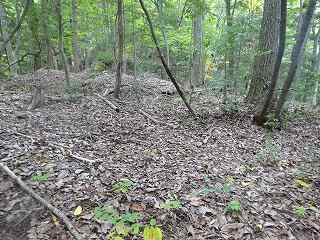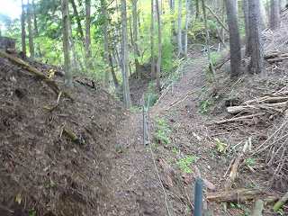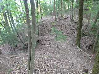 | その上にある堀切。 | さらに上の傾斜地形の上にも堀切が見られる。 |