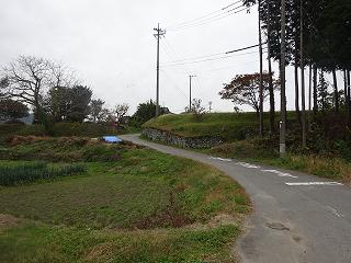 しかし、北側の台地下に降りて、大沢川の方から城址方向を見ると、いかにも城館らしい土手がそびえて見えている。この段丘地形を利用して築かれた城館であったようである。