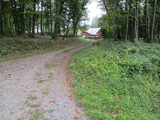 そこでその先に進んで行った所、この場所から台地に上がって行く新しい道が付けられていた。上記の道は狭かったので、こちらに新しい道を付けたものらしい。この道ならば安心して運転することができる。