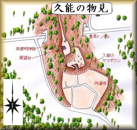 豊昇久能の円通寺の西方上の山稜が久能の物見の跡である。ちょうど豊昇トンネルの真上辺りの位置である。