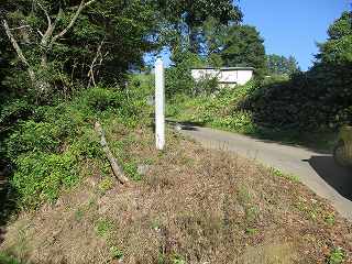 登り口は分からなかったのだが、ストリートビューを見てみると、南東側に台地上に上がって行く道が付けられており、そこに標柱が立てられているのが分かった。そこで、その入口を探していく。