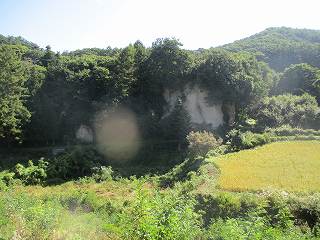 円通寺の前を通って行くと道は左手に折れていく。この時、民家の倉庫の脇辺りから物見に登って行く道が付けられているのだが、これがけっこう分かりにくく、行き過ぎてしまった。すると後は民家に入って行く道しかなく迷ってしまったのであった。