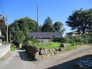 城址と言われている台地は周囲が切り立った土手に囲まれているので、そのまま城館として成立する地形である。しかし、城内は住宅地となっているので、現状では遺構らしきものを見ることができない。