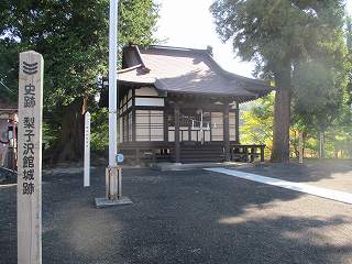 城址標柱には「史跡 梨子沢館城跡」とある。『信濃の山城と館 の「梨沢城館」という名称にしても、この名称にしても、「城館」と言ったり「館城」といったり、とても不自然である。梨沢館か梨沢城か、どちらかにすべきだと思う。