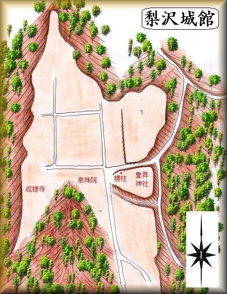 梨沢城館は、梨沢の豊昇神社の北側一帯に築かれていた。豊昇神社を目指していくとよいと思う。駐車場はないが、豊昇神社の辺りにかろうじて車を停めて置くことができた。