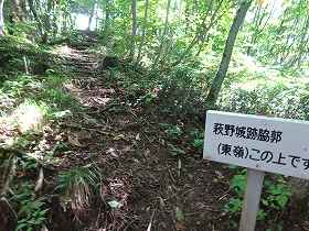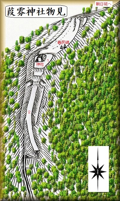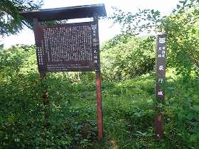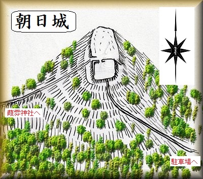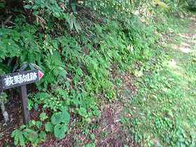 途中には「朝日城」の方向を示す案内板があったというのに、肝心の城内に「朝日城」という案内はなかった。だが、「←葭雰神社800m」という表示があったので、ここが朝日城であることが確認できた。葭雰神社にも「←朝日城800m」とあったのであるから、当然、ここが朝日城のはずである。