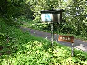 また、神社の北側一段下には義民の顕彰碑があった。そして、その前にあった案内板には「←朝日城800m」と書いてある。この先には小野平城があり、この後訪れる予定だったのであるが、そちらの方角までもトレッキングコースが付いているらしい。しかし、800m尾根を歩くのは時間がかかりそうだ。ここはいったん来た道を引き返して、車で次の城の辺りまで向かうことにした。