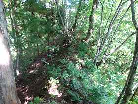 | 3郭下の堀切。 | 3郭から北側に延びる細尾根。 |