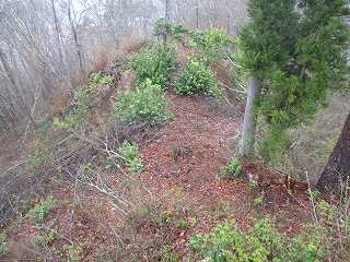 これだけのものである。上記の通り、竪堀状の地形があるので、城館であることは間違いないものの、明瞭なものではなく、いかにも普請は不十分である。急造されて、十分な工事を施す手間がなかったものと思われる。