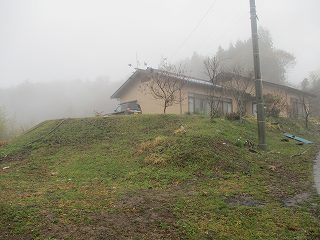 小穴城も和田城と同様、何もない山稜上に築かれた山城である。しかし、林道はしっかりと付けられているので、車でアクセスは可能である。驚くのは、このような山中にも一軒だけ民家があるということである。ポツンと一軒家のような家である。