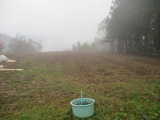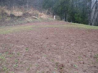 | 3郭南側の虎口だが、後世の改変であろう。 | 3郭内部。一面の畑となっている。 |