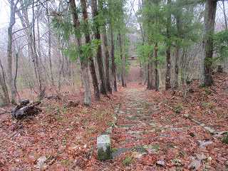 最初は林道のような未舗装の道を進んで行く。これは山稜途中の耕作地へ行くための道であったようだ。ただし現在では耕作は放棄されている。
