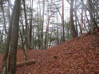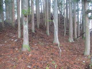1郭とはいえ、削平はそれほどきちんとしてはいない、西側から南側にかけては急斜面となっているが、東側は比較的傾斜が緩やかで、腰曲輪のようなものも造成されている。