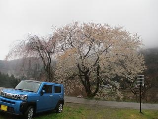 | しだれ桜が満開だった。天気が見えればきれいに見えるだろうなあ・・・・。 | |