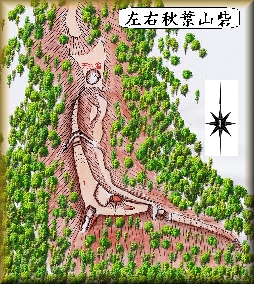 左右秋葉山砦は、左右の集落の北側にそびえる比高130mほどの山稜に築かれていた。集落の東側の端に長者山遊歩道の入口案内があり、ここから山道を歩いて行き、途中で左側の城山に登って行けば城内に到達することができる。