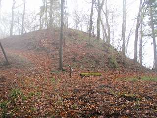 | 3郭から見る2郭城塁。 | 現地案内では二ノ丸跡とある。 |